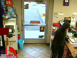 Initial investigation revealed the suspect entered the store and pulled out a tire iron and asked for money from the clerk. He stated that he was in need of a couple of hundred dollars as his daughter was in the hospital dying. The suspect left with an undisclosed amount of cash and ran eastbound from the store. No one was injured.