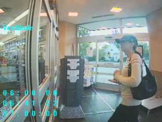 The suspect is described as a white female with dark, shoulder length hair, a slender build and approximately 5'5" - 5'7" tall. The suspect arrived at a Walgreen's as the passenger in a gray or silver passenger car.