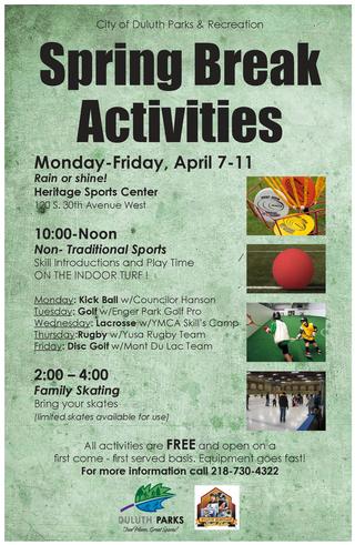 SUBJECT: Spring Break Activities Scheduled at Duluth Heritage Sports Center
