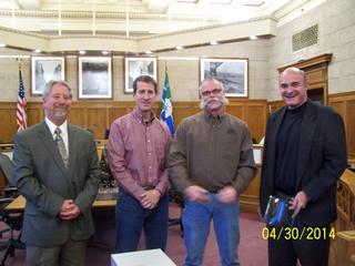 (In the photo from left to right are: Keith Hamre (Director of Planning and Construction Services-City of Duluth), David Sarvela (President of the Duluth Planning Commission), Kevin Claus (University of Minnesota Duluth), and Mark Lambert (Bluestone Commons)