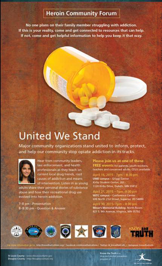 A Heroin Community Forum Meeting will be held at the U.M.D. Campus - Griggs Center on April 16th, 2015 at 7:00 p.m.