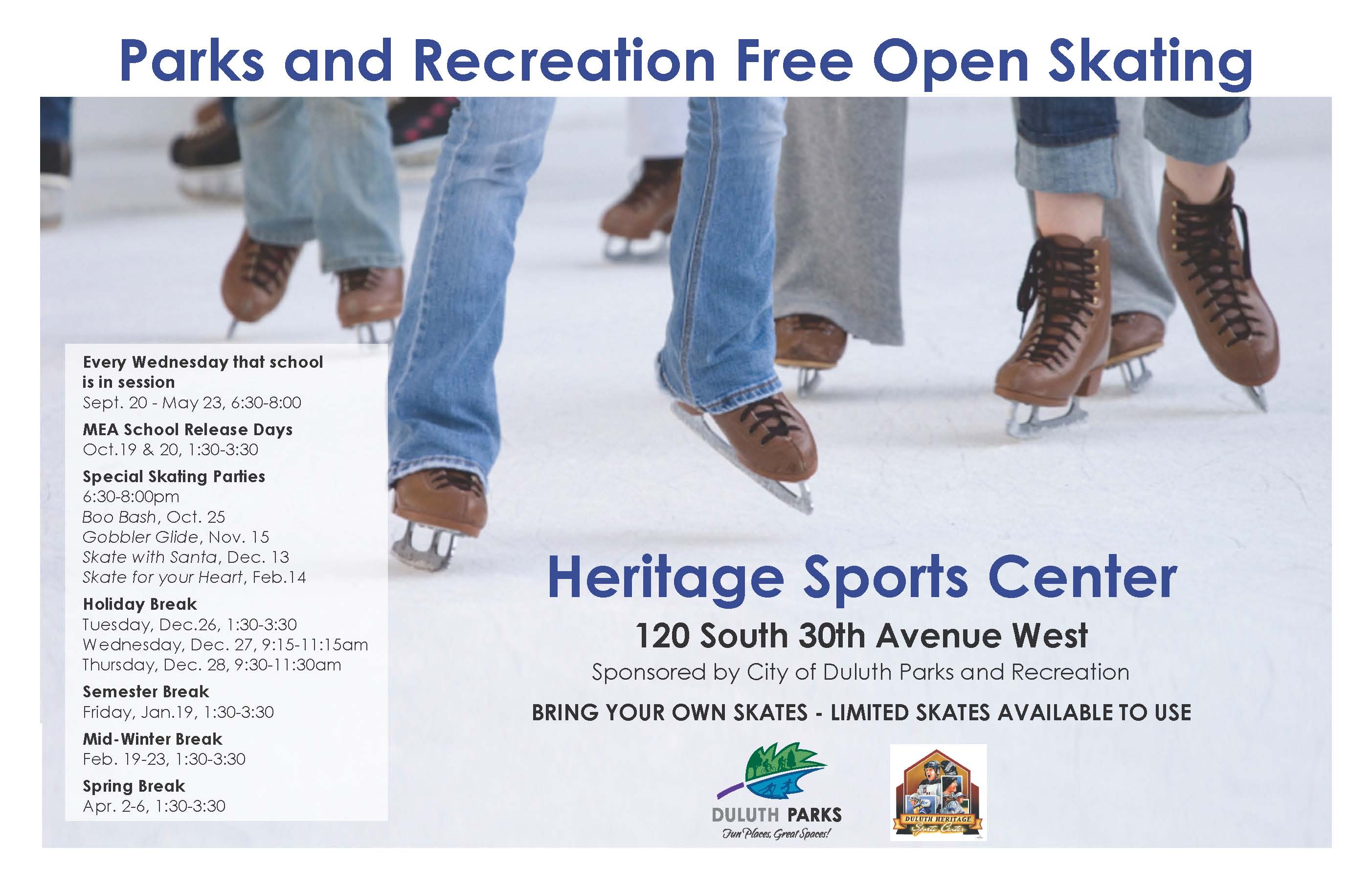 [Duluth, MN] - The summer open skate program organized through the City of Duluth Parks and Recreation in partnership with the Essentia Health Duluth Heritage Sports Center is transitioning from summer to the school year schedule. Today, September 20, marks the start of open skating for the school year. These skating sessions run every Wednesday night that school is in session from 6:30-8:00 pm and is located at 120 South 30th Ave West.