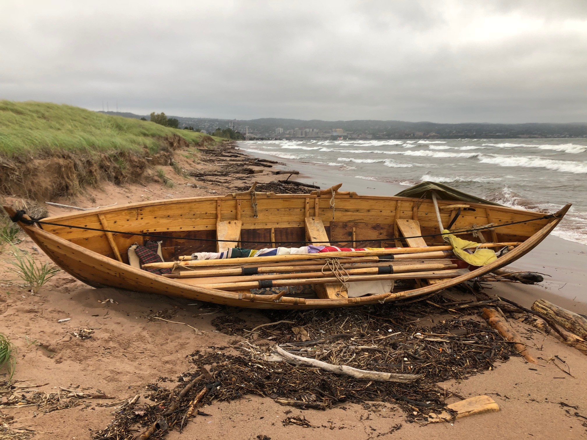 On Sunday September 23, 2018 at 0820 Duluth Police responded to the 1900 Block of Minnesota Avenue for a report of a boat that washed ashore. This appears to be a Scandinavian Style boat. Several authentic oars were removed by police and were safely stored. No identifiers were located on or in the boat as to its ownership. We did receive any calls regarding a water emergency related to this discovery. Duluth Police would like to get this back to its owner. Please contact the Duluth Police Department at 218-730-5400 if you have information or are the owner of this boat.