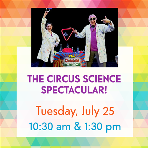The Circus Science Spectacular! - 10:30 am and 1:30 pm: Presenting science lessons, circus style! This innovative and entertaining educational offering uses the magical world of circus to teach concepts like Forces and Motion, Simple Machines, Matter, Air Power, Chemical Reactions and more. Audiences of all ages alternate between laughter and amazement as science and circus combine. Trained by Ringling Brothers Circus, Steve and Kobi’s performing skills in comedy, juggling, magic and balancing bring the dimensions of novelty, surprise, and fun to the mix. So, step right up! The Circus Science Spectacular is your ticket to science fun.