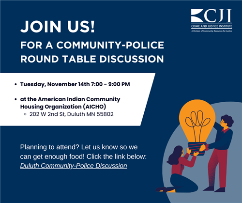On Tuesday, November 14, from 7 – 9 p.m. at the American Indian Community Housing Organization (202 W 2nd St), the Crime and Justice Institute (CJI) is hosting a community-police round table discussion focusing on the Racial Bias Audit.
