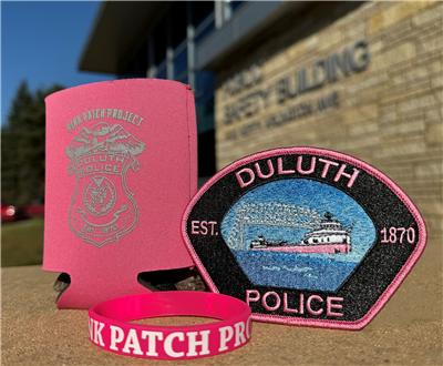 In previous years, the Duluth Police Department has sold pink patches for $10/patch. This year, in addition to selling commemorative pink patches, DPD will also be selling pink koozies for $5/koozie and pink silicon bracelets for $3/bracelet.