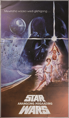 Film screening of Star Wars: A New Hope (Anangong Miigaading in Ojibwe) dubbed in the Ojibwe language with subtitles in English. Follow ogichidaa (warrior) Luke Skywalker on his quest to restore balance to the Force and hear the Ojibwe language celebrated in a new way!