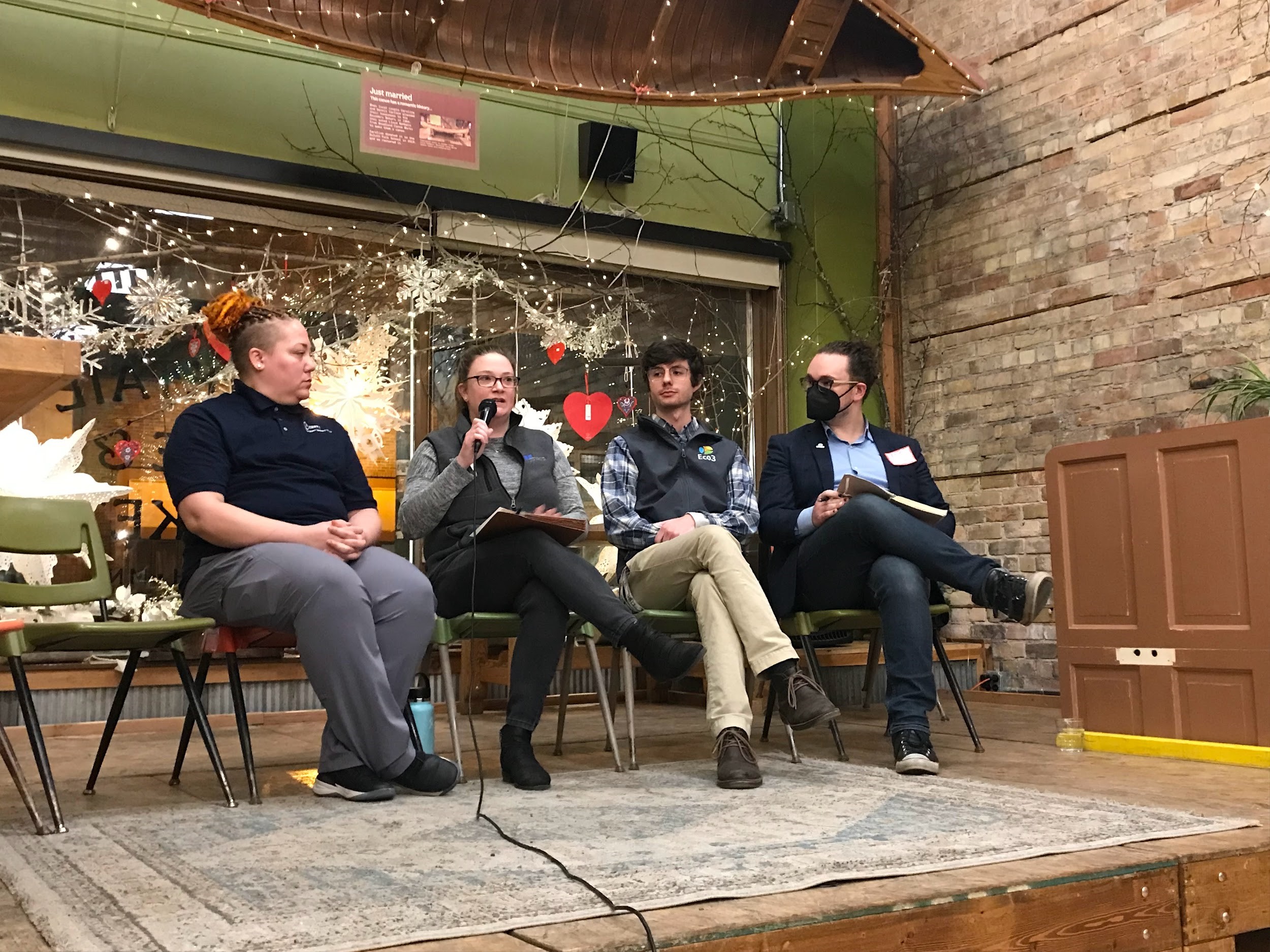 Cameron Kadlubowski, the Community Energy Transition Specialist at Ecolibrium3, returned after appearing at our first workshop! Cameron covered Eco3’s programs and when to take advantage of them. They provide comprehensive energy audits that utilize a large red “blower door” test which depressurizes the house to determine how much heat is escaping from the home and where drafts are located. ECo3 3 will also be introducing Energy Navigation Services to provide 1-on-1 support for homeowners looking to sustainably live in their home.